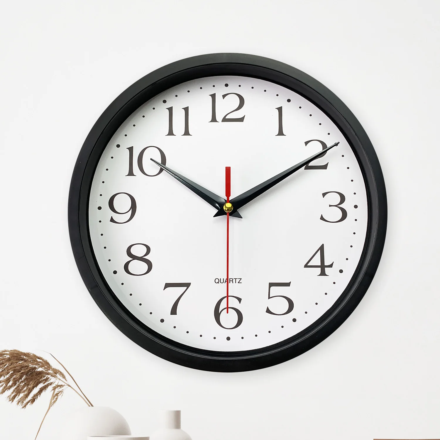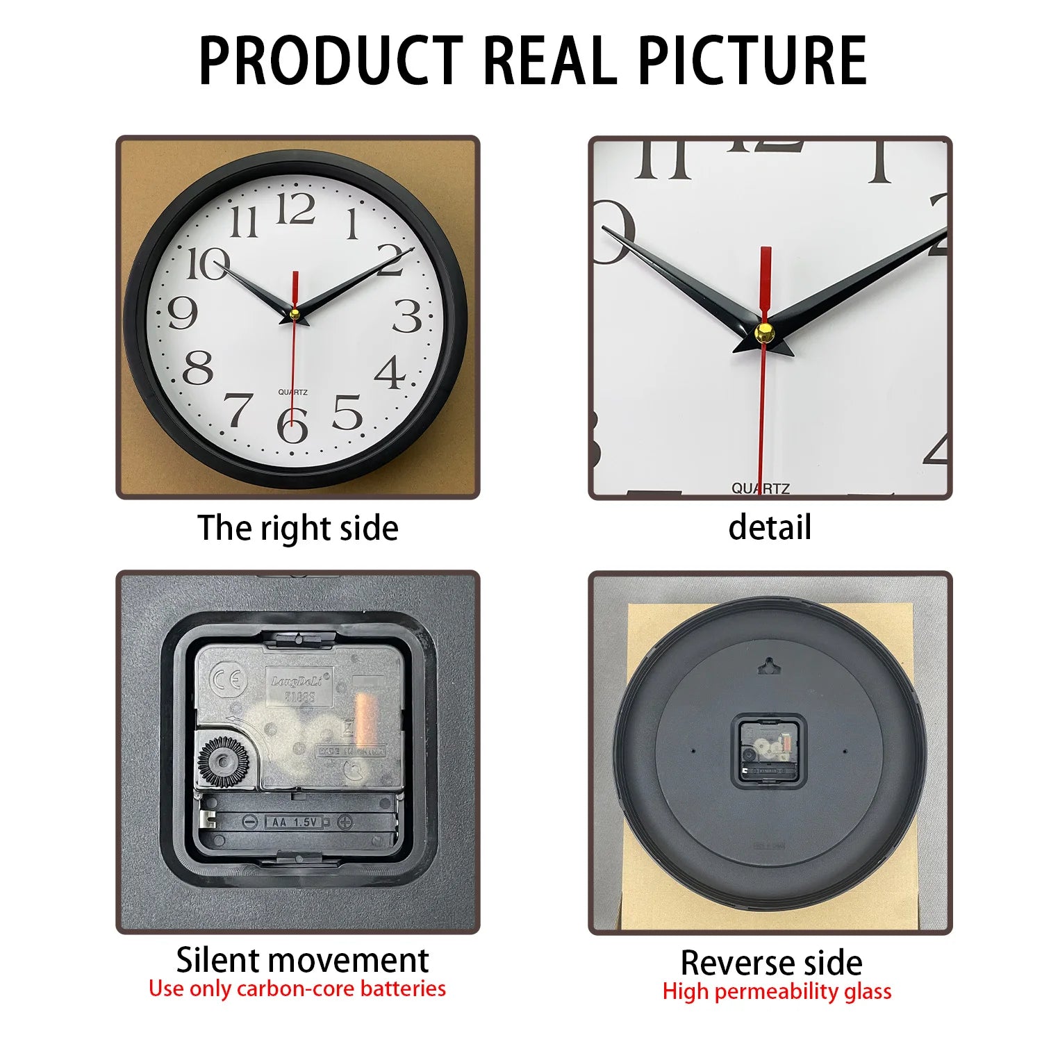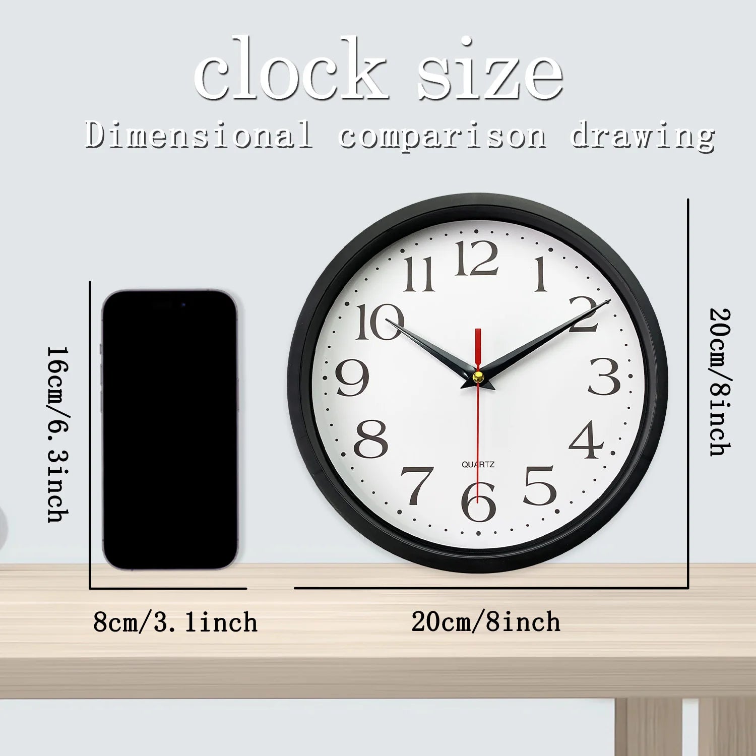 8inch Modern Simple Black Frame Pattern Plastic Glass Wall Clock Living Room Bedroom Kitchen Home Decoration Wall Clock Silent Quartz Clock Holiday Gift (No Battery)