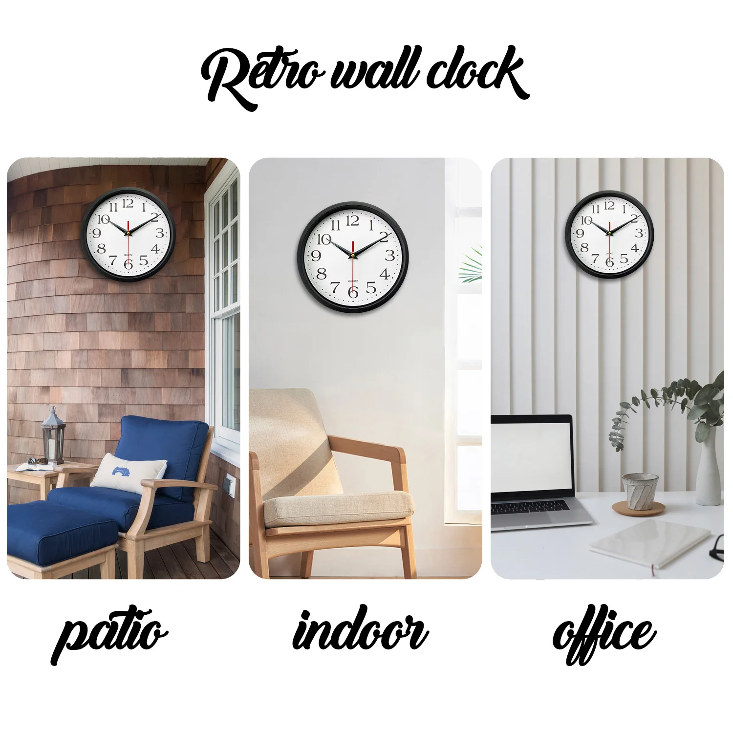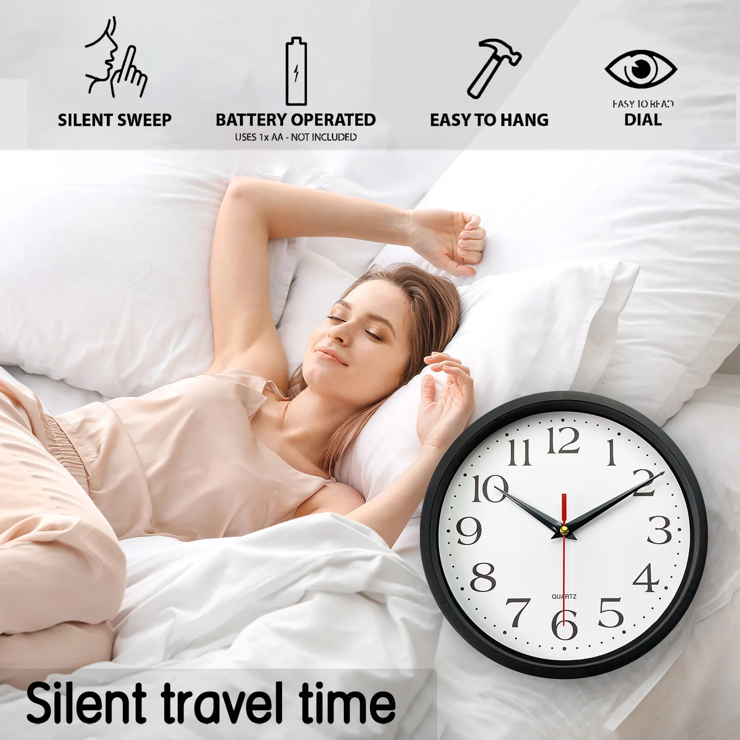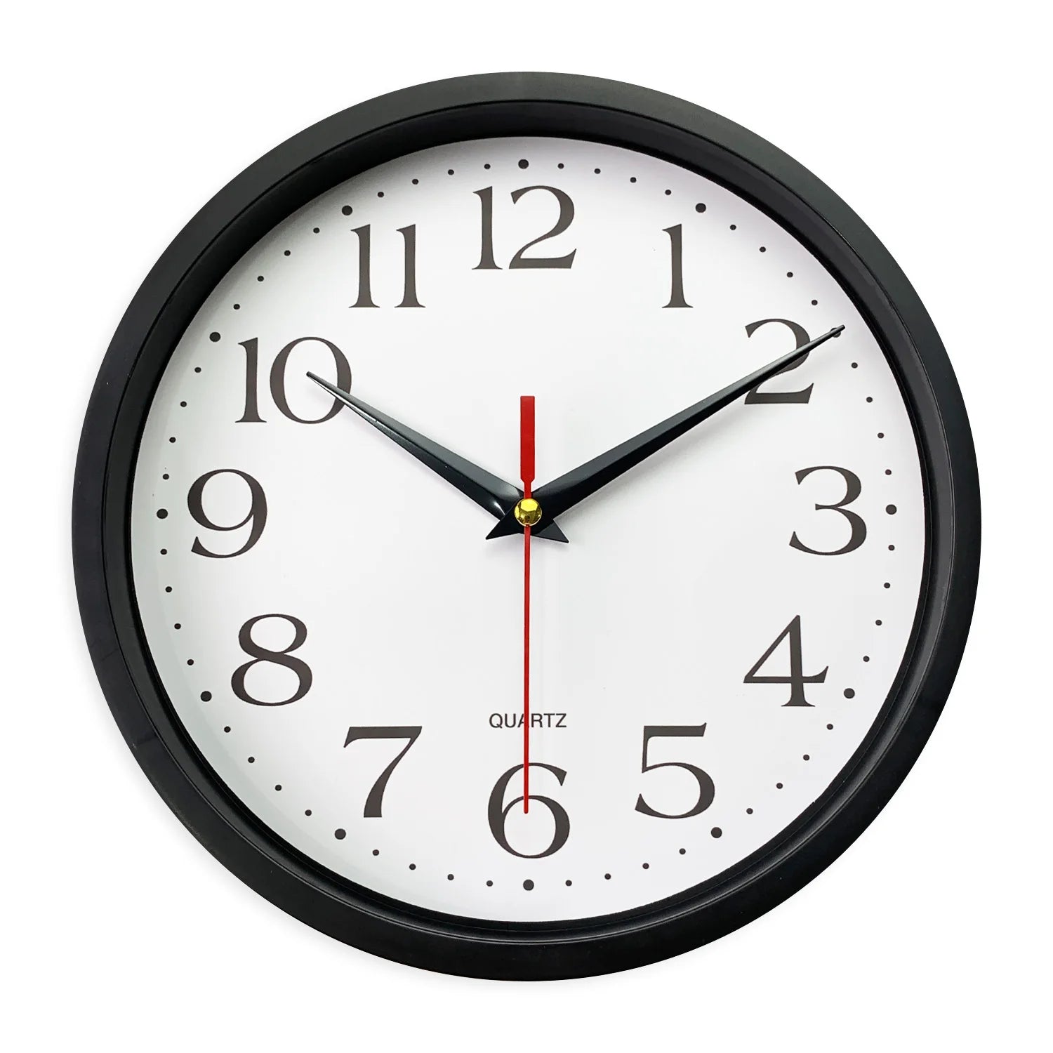 8inch Modern Simple Black Frame Pattern Plastic Glass Wall Clock Living Room Bedroom Kitchen Home Decoration Wall Clock Silent Quartz Clock Holiday Gift (No Battery)