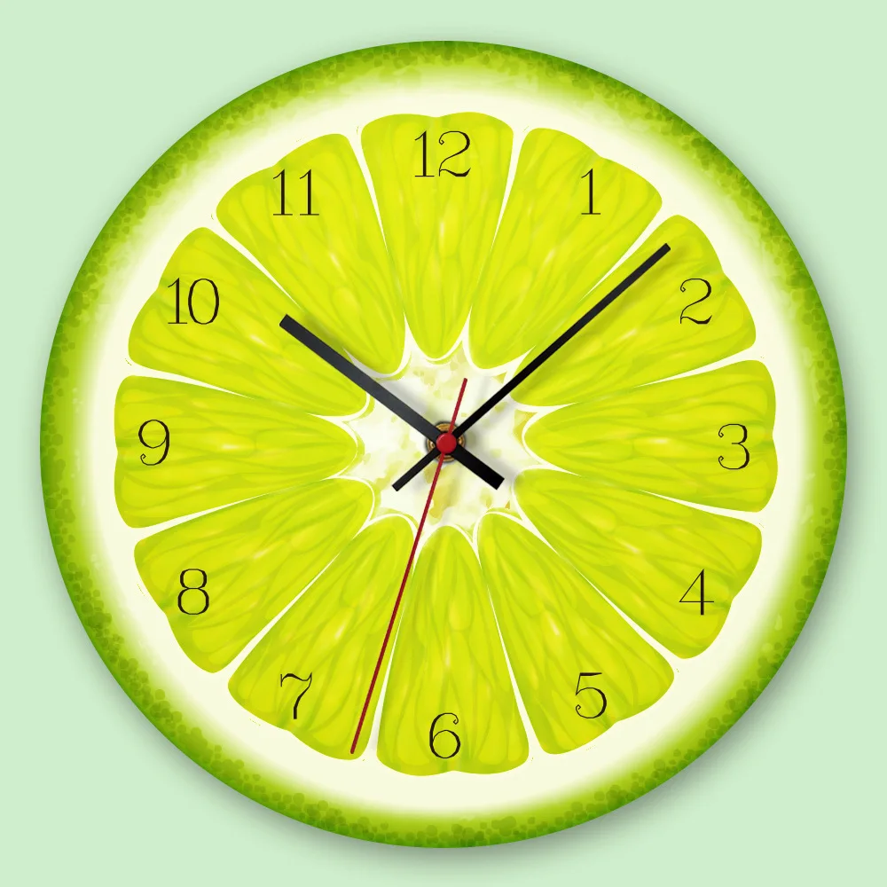 JOYLIVE Creative Fruit Wall Clock Lime Modern Kitchen Lemon Clock Watch Home Decor Living Room Clock Tropical Art Timepieces