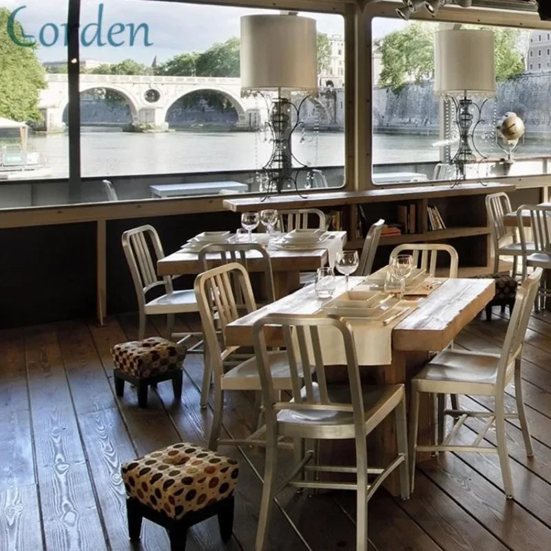 Nordic simple home backrest chair industrial style metal aluminum chair Navy chair outdoor restaurant hot pot dining chair