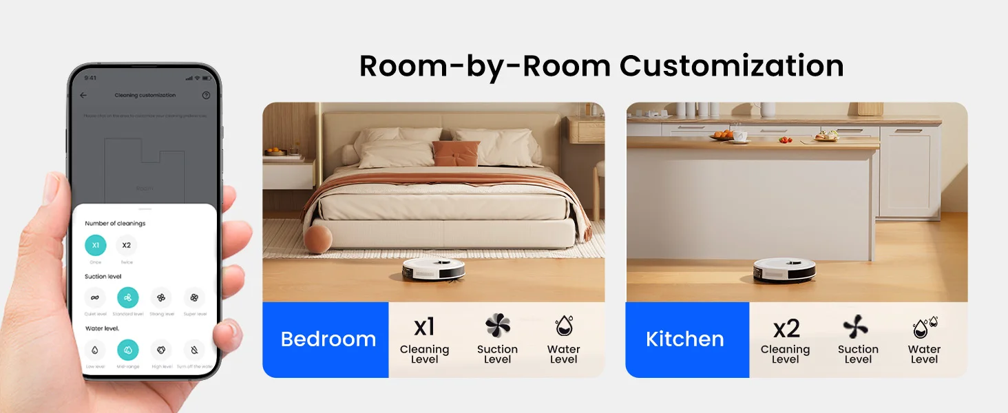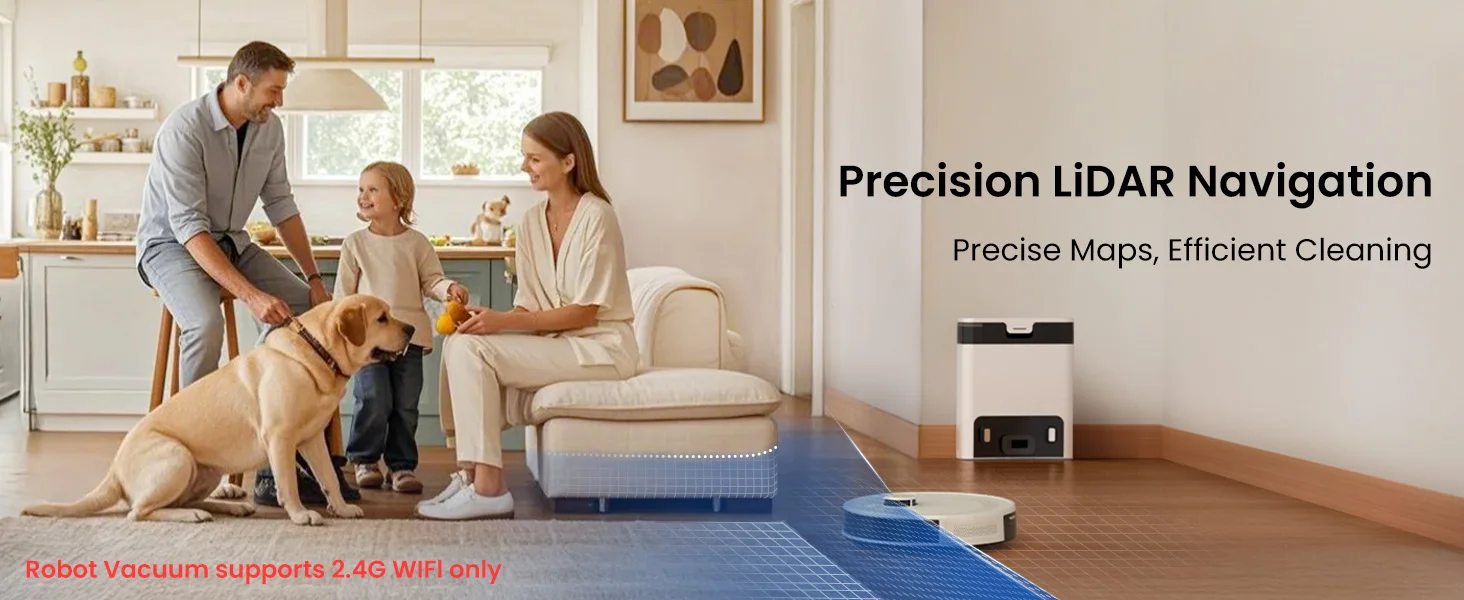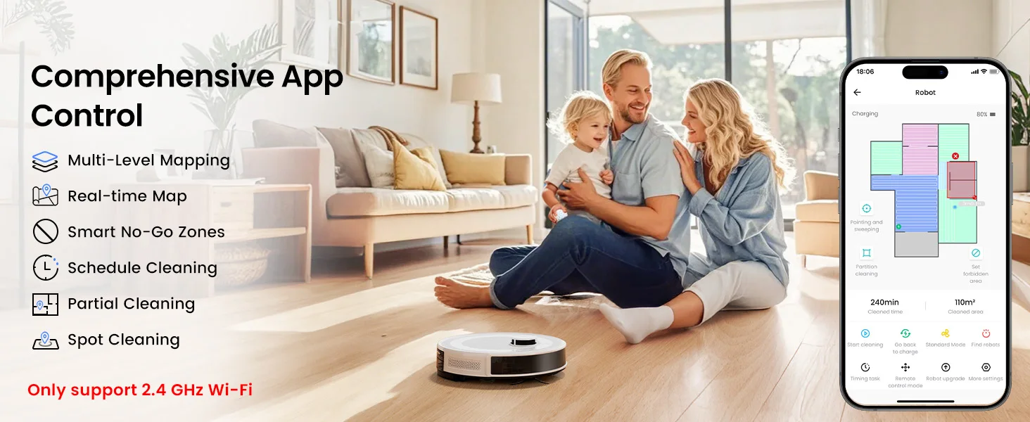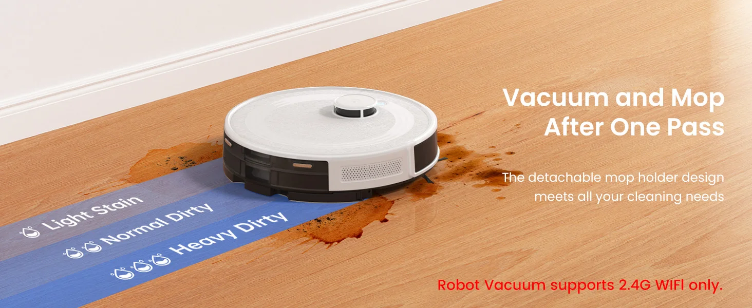 Precise Maps, Efficient Cleaning (Robot Vacuum supports 2.4G WiFl only)