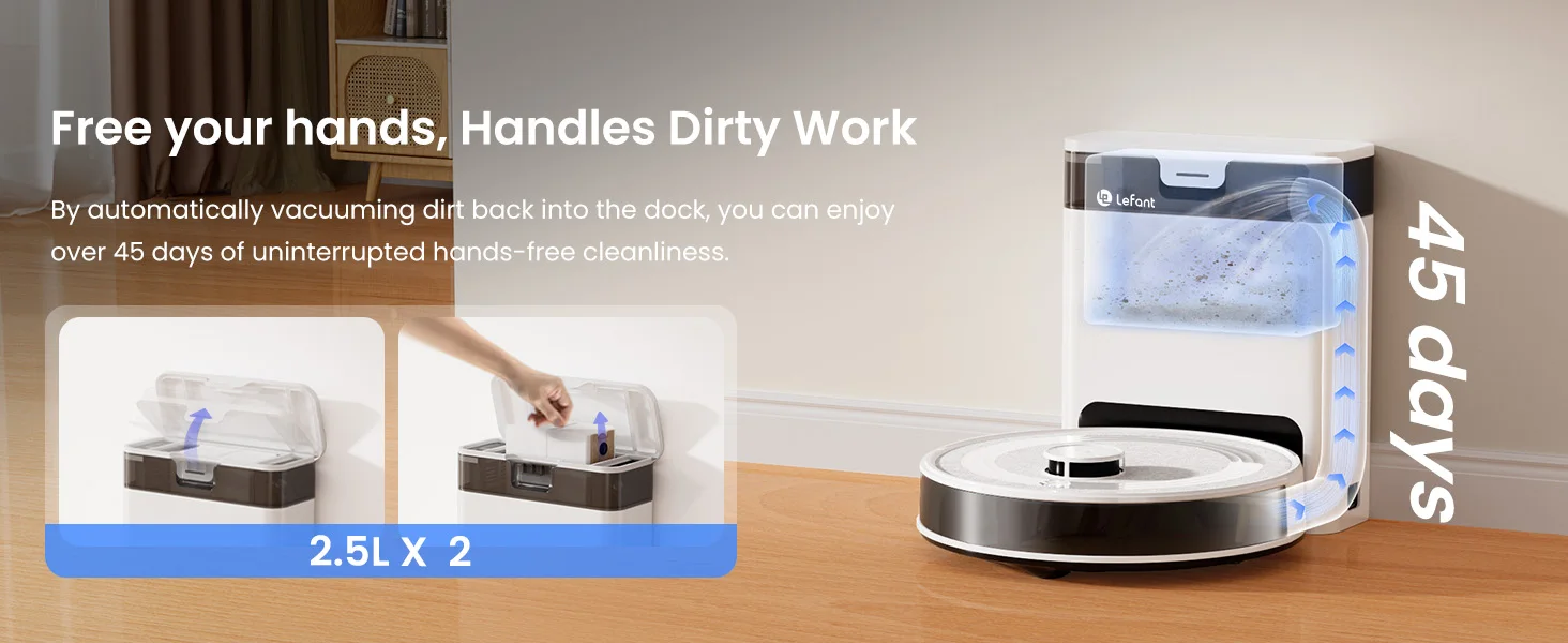 By automatically vacuuming dirt back into the dock, you can enjoy over 45 days of uninterrupted hands-free cleanliness
