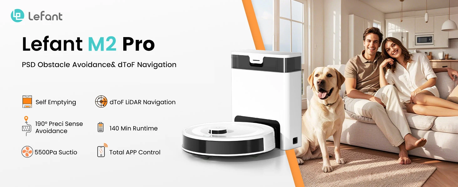 Lefant Robot Vacuum Cleaner M2 Pro Self-Emptying, 6000Pa, DTOF Laser Navigation, PSD Obstacle Avoidance, Smart Carpet Floor Wash