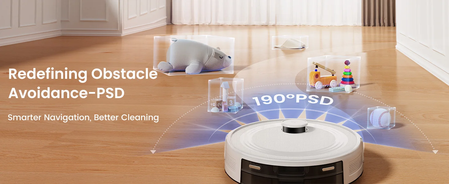 The newly upgraded PSD can effortlessly provide precise obstacle recognition and avoidance under sofas, beds, or at night