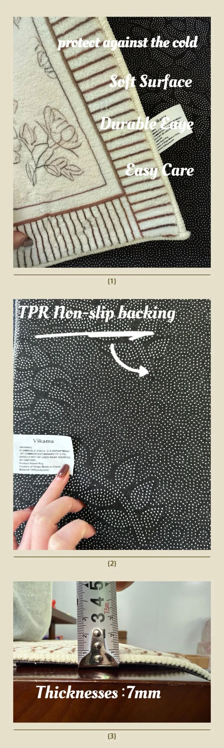 Product Characteristics : washable dirt repellent non-slip lint-free Machine washable