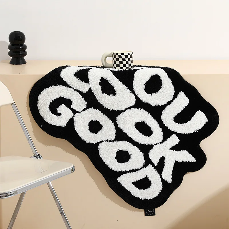 VIKAMA Irregular Letter Floor Mats, Soft And Anti-Slip Faux Cashmere Area Carpets, Bedroom Chair Floor Mats, Home Decoration